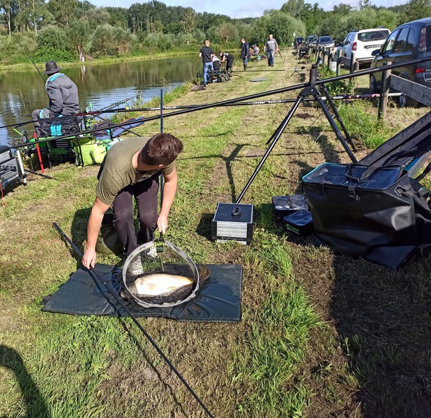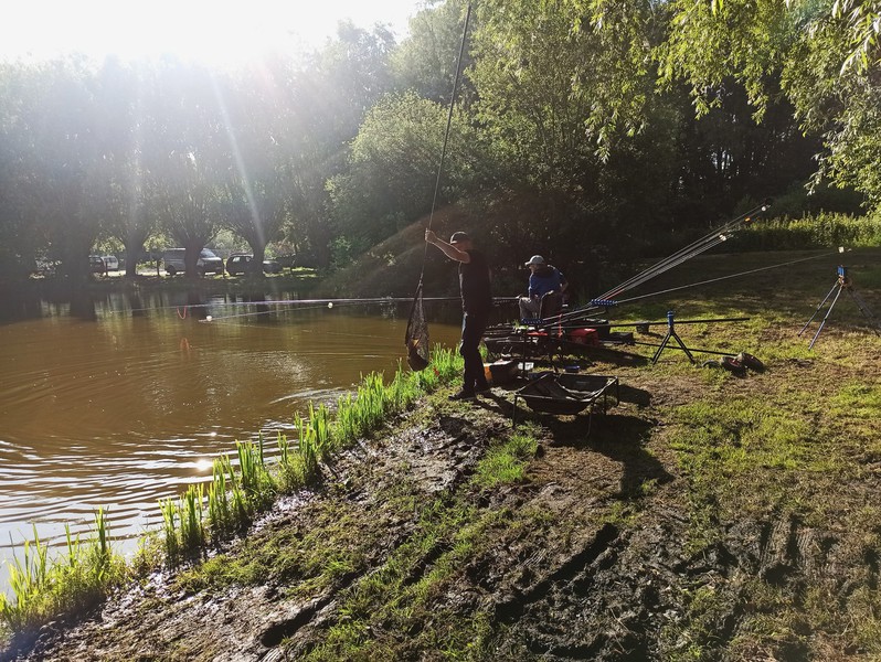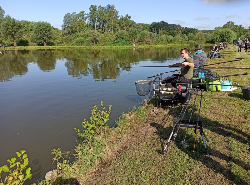 Sous un beau soleil, 108 carpes pour un poids total de 273 kg (154,5 kg en matinée) ont été sorties de l'eau. La plus grosse carpe attrapée : 6,700 kg par l'équipe Mathéo/Gabriel